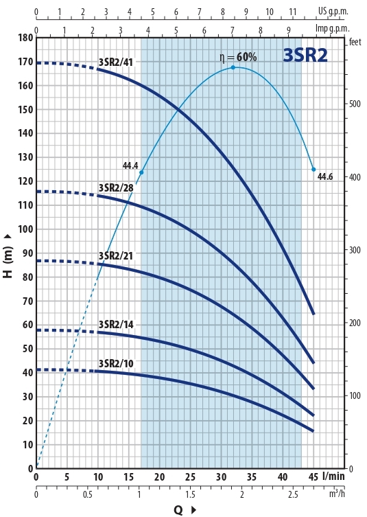 В случае уже существующей скважины насос 3SR является идеальным решением для замены, особенно в старых и покрытых налётом скважинах. Конструкция с плавающими рабочими колесами позволяет перекачивать воду с содержанием песка до 150 г/м3.