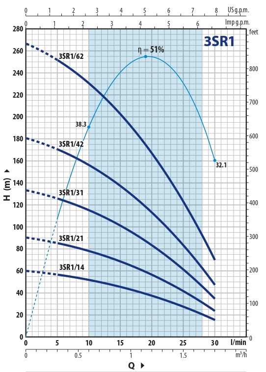В случае уже существующей скважины насос 3SR является идеальным решением для замены, особенно в старых и покрытых налётом скважинах. Конструкция с плавающими рабочими колесами позволяет перекачивать воду с содержанием песка до 150 г/м3.