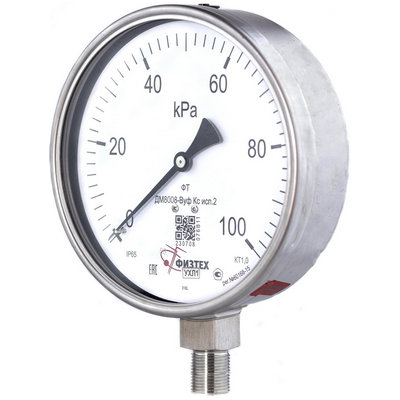 Особенности и премущества манометра Физтех ДМ8008-ВУф Кс исп 2 (0-400 кПа) к.т. 1,0 Ø160 мм IP65 M20х1,5 РШ SG ВуСл:
