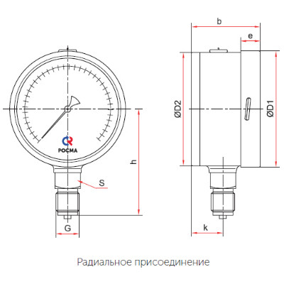 - Практичность и универсальность: Радиальное присоединение с резьбой G1/2 или M20×1,5 облегчает интеграцию в системы. Корпуса диаметром 100 и 150 мм (160 мм под заказ) компактны и выдерживают широкий диапазон давлений — от 0,06 до 100 МПа, покрывая множество промышленных задач. Опциональный корректор нуля на стрелке позволяет точную настройку.